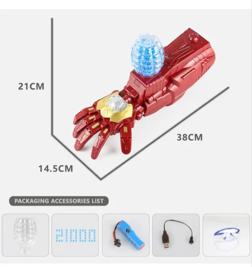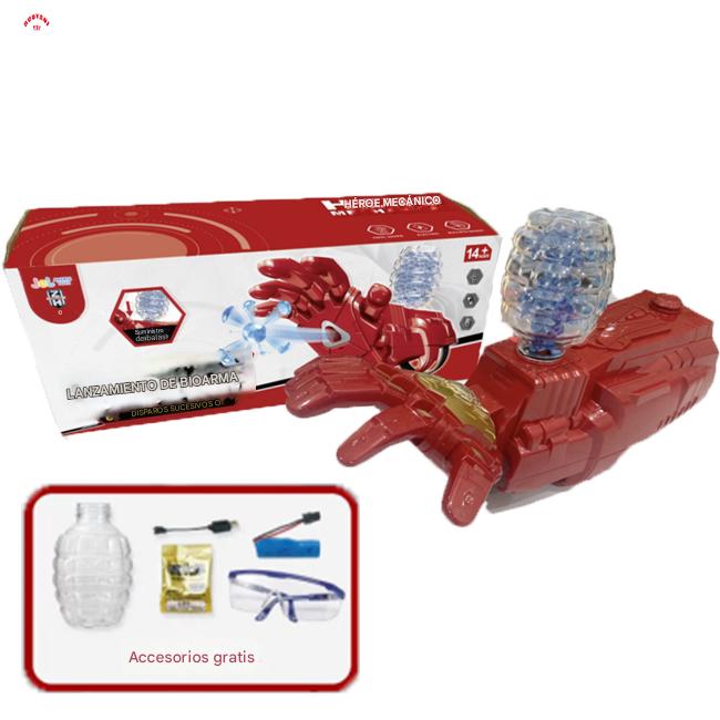 BRAZO DE IRON MAN LANZADOR DE BOLAS DE HIDROGEL